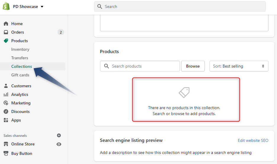 Go to your **Shopify admin panel** > **Products** > **Collections** and check whether your collection is not empty.